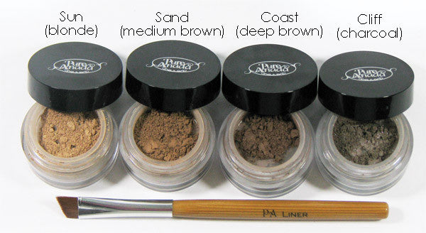 Apply Pure Anada loose mineral brow colors with the Pure Anada angle liner brush, (available in the Vegan Brush Ensemble). Simply dip the brush into the minerals. Tap off any excess powder, and apply in soft strokes to your brow-line.